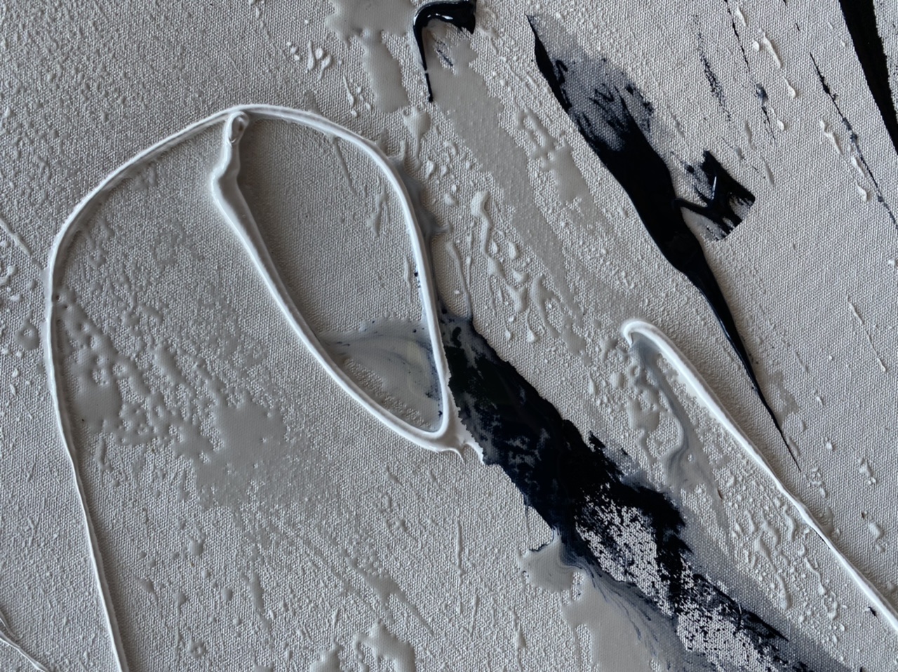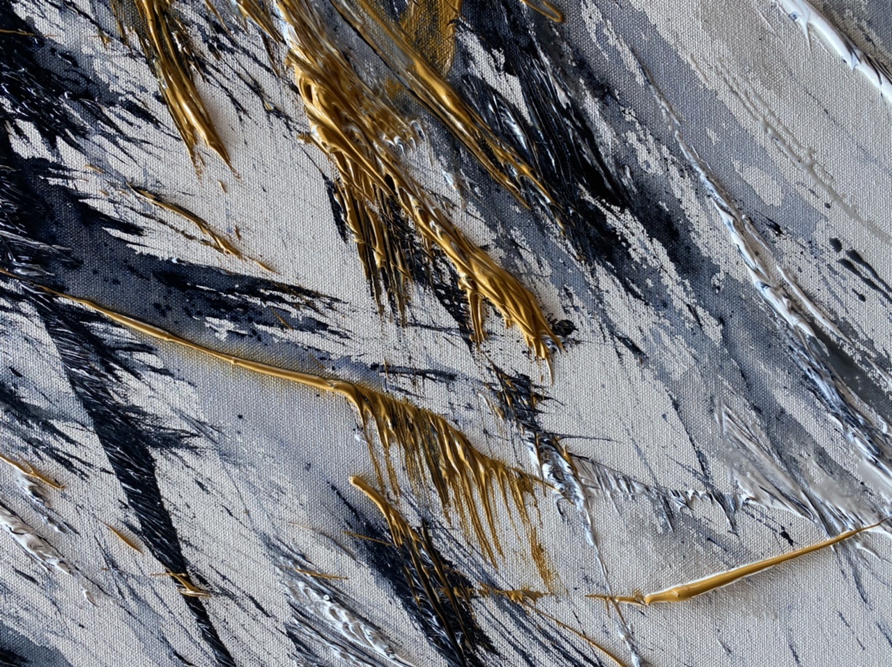Working on ‘sweeping clean” -a handmade African broom is a satisfying tool to clean my canvas and then to create tinders, black and white and gold sparks like calligraphy or graffiti which is then semi-obliterated by the action of the grass broom…. www.facebook.com/100063632527765/posts/435176581946756/