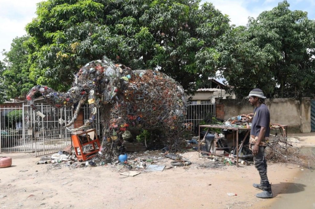Johnson Zuze master wire and found objects artist… with the elephant in the room!!