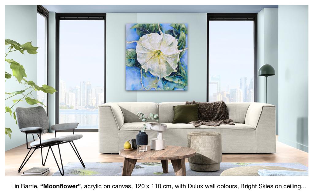 Now “Moonflower” is on display at the Borrowdale Brooke Golf Club, an apt setting for the painting, as in this very estate we walk at night enveloped by the gorgeous summer floral scent of these glorious but poisonous plants …!