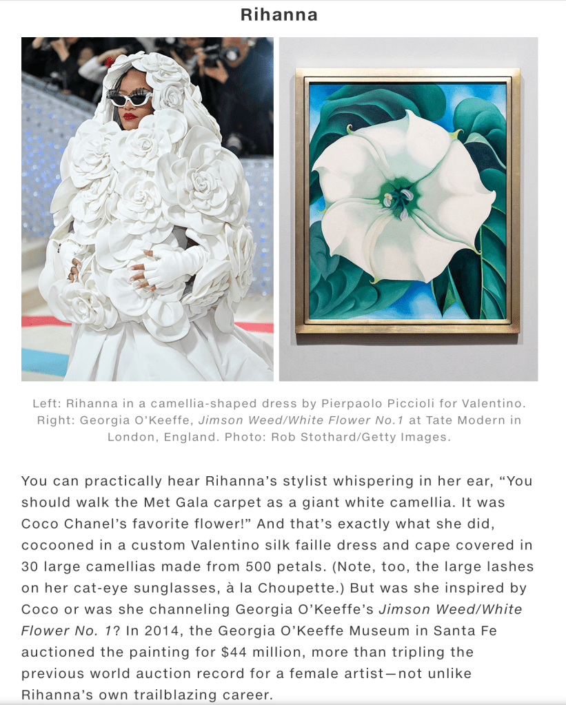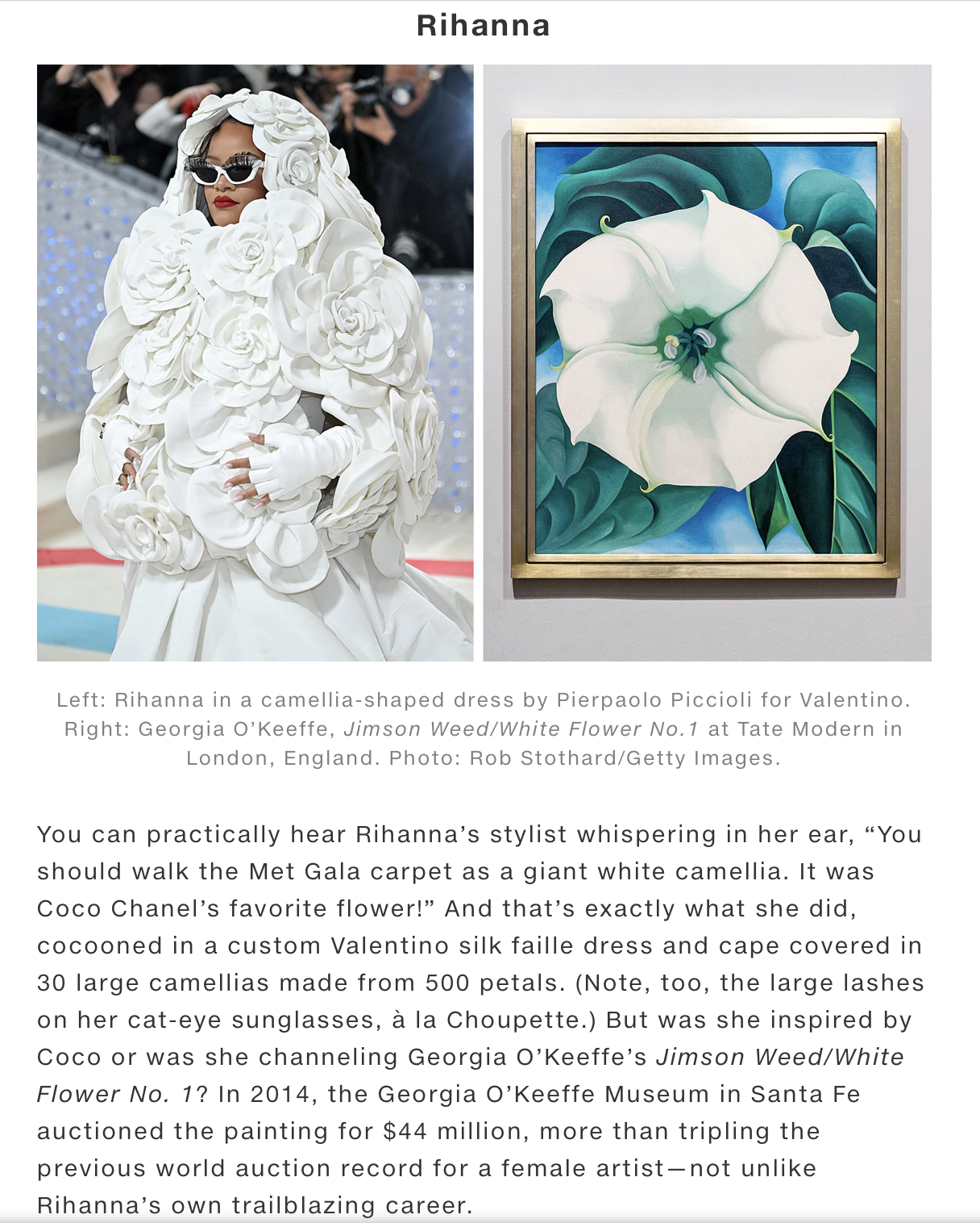 Well! What do my art, Rihanna, The Met Gala, Coco Chanel, and Georgia O’Keeffe have in common?