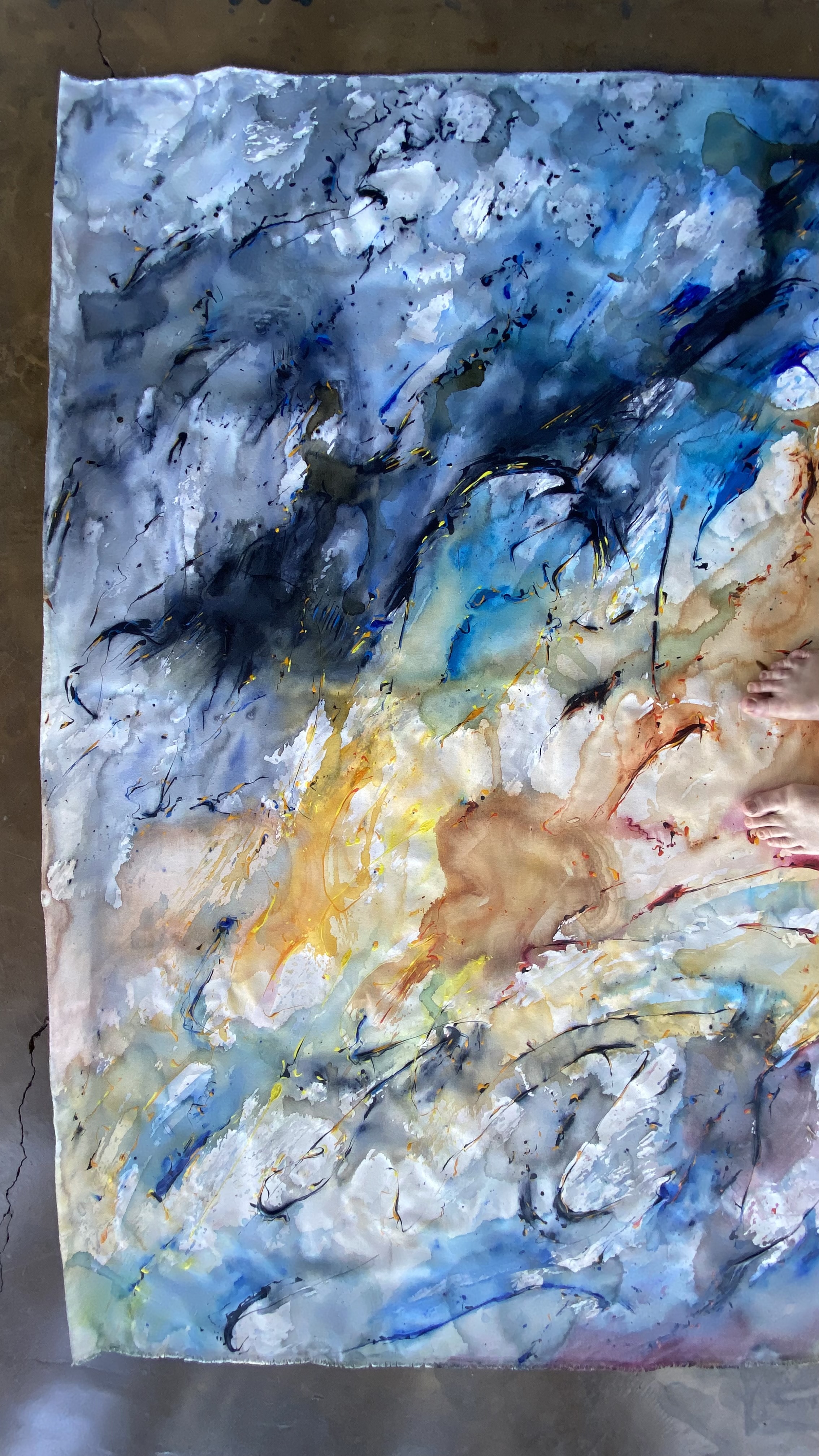 Now I am fully awake, vibrating and present in my energized self…time to toss the tea, to paint, to smell the inspiring petrichor, my canvas grounded by my tingling toes …