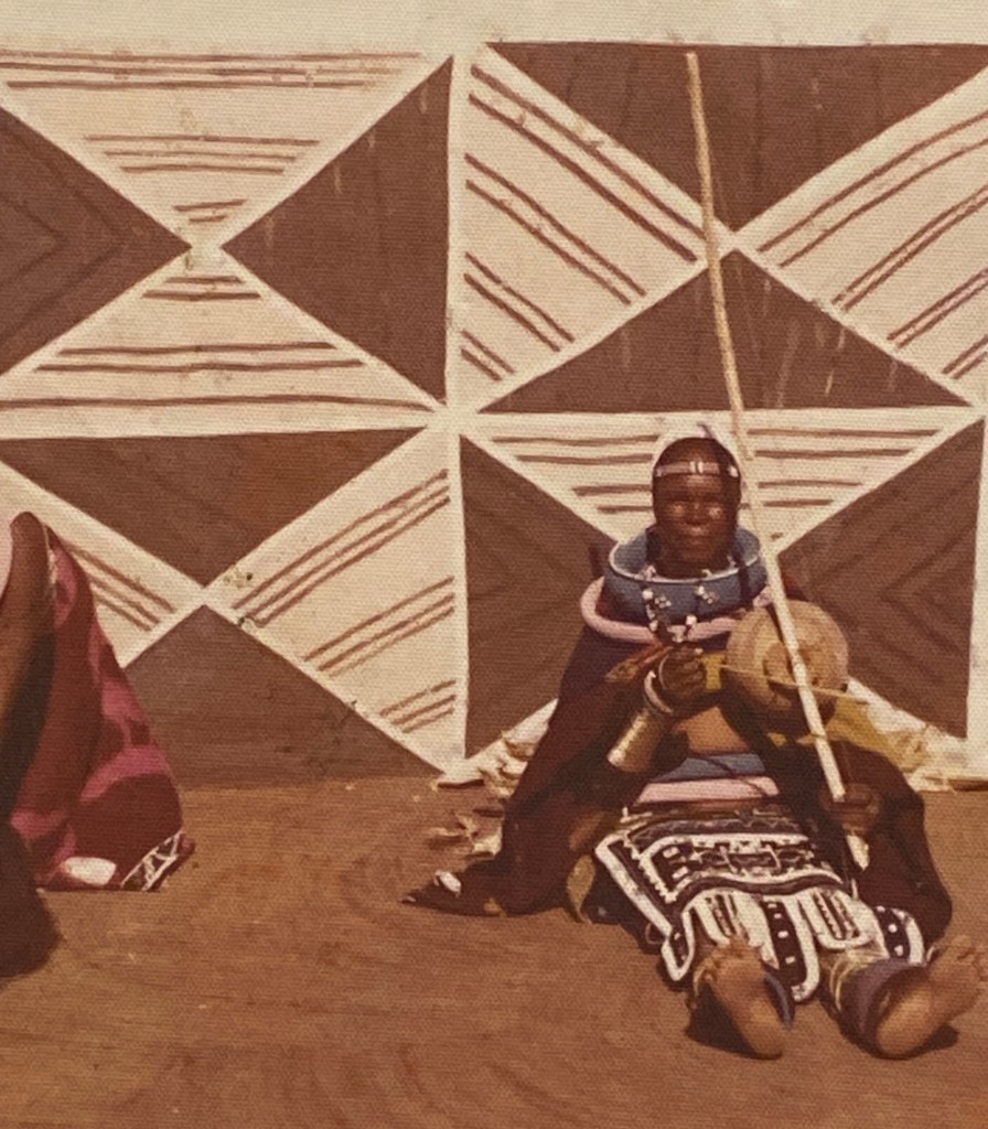 Recounting how her artistic journey began, Esther Mahlangu often tells the story of being trained by her grandmother and mother in the early 1940s, saying: “I would continue to paint on the house when they left for a break. When they came back, they would say: ‘What have you done, child? Never do that again!’ After that, I started drawing on the back of the house, and slowly my drawings got better and better until they finally asked me to come back to the front of the house. Then I knew I was good at painting.”