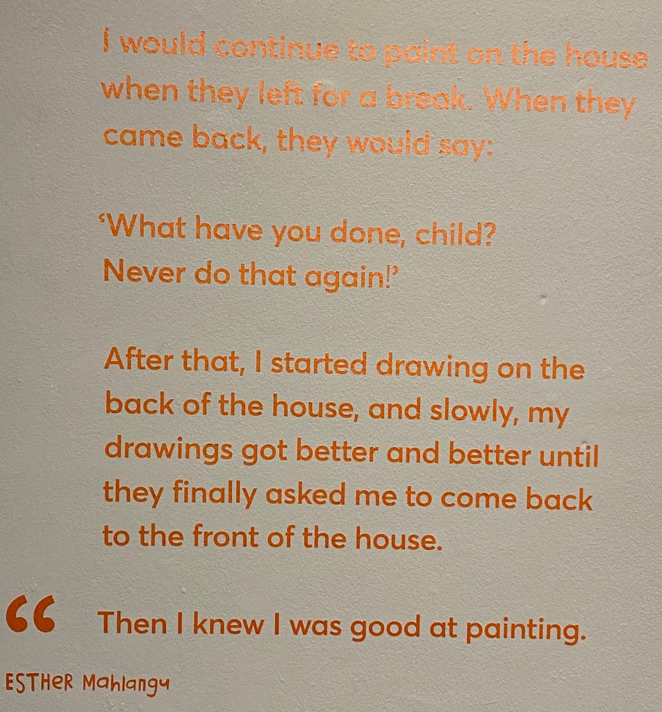 After viewing the offerings at Investec art Fair, I delved into Esther’s exhibition at Iziko Museums of South Africa “Then I Knew I Was Good at Painting”: Esther Mahlangu, A Retrospective.