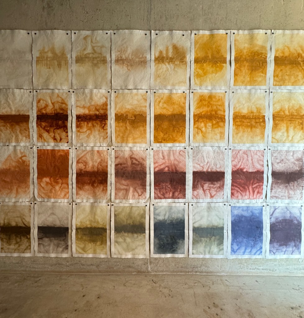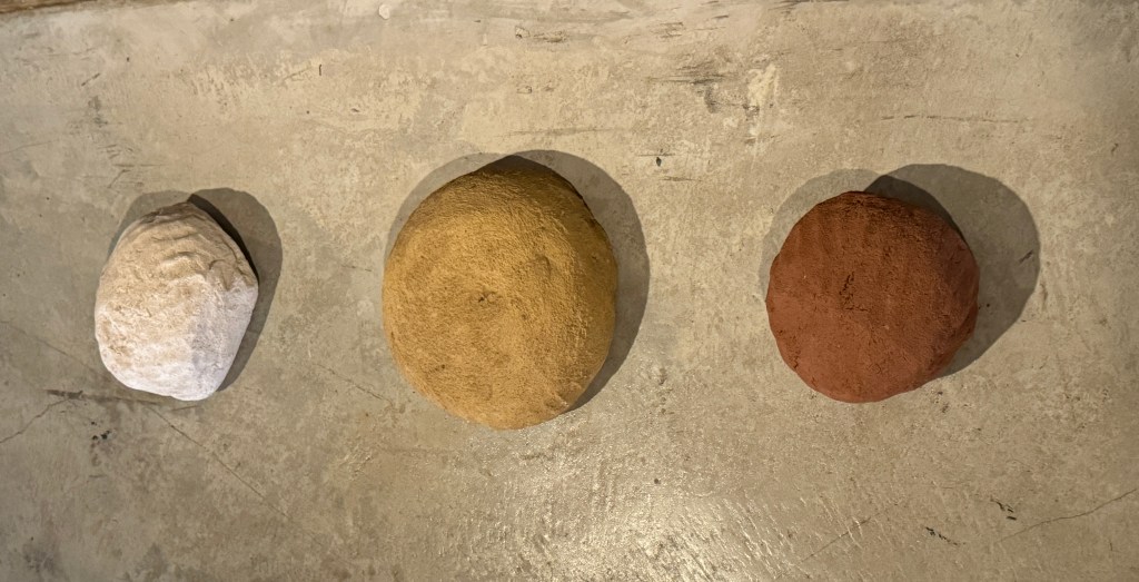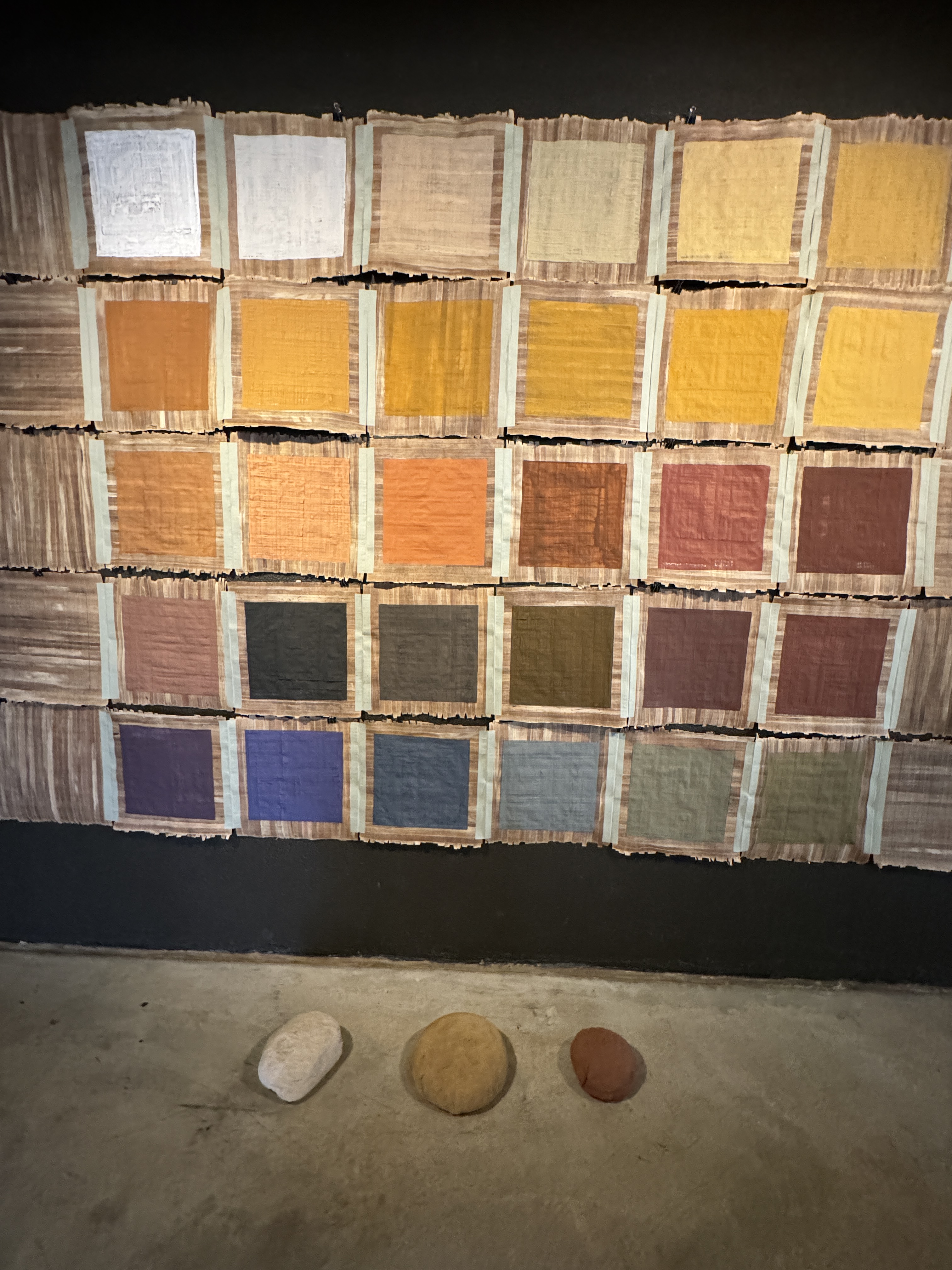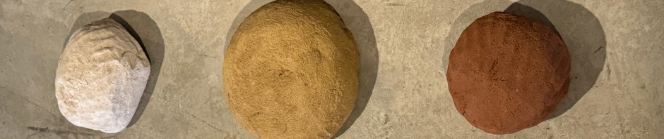 Stunning cakes of ochre squat on the concrete floor holding the promise of layered stories within –