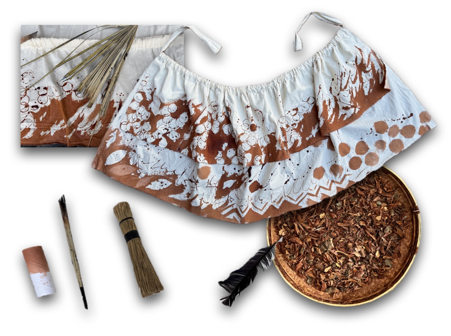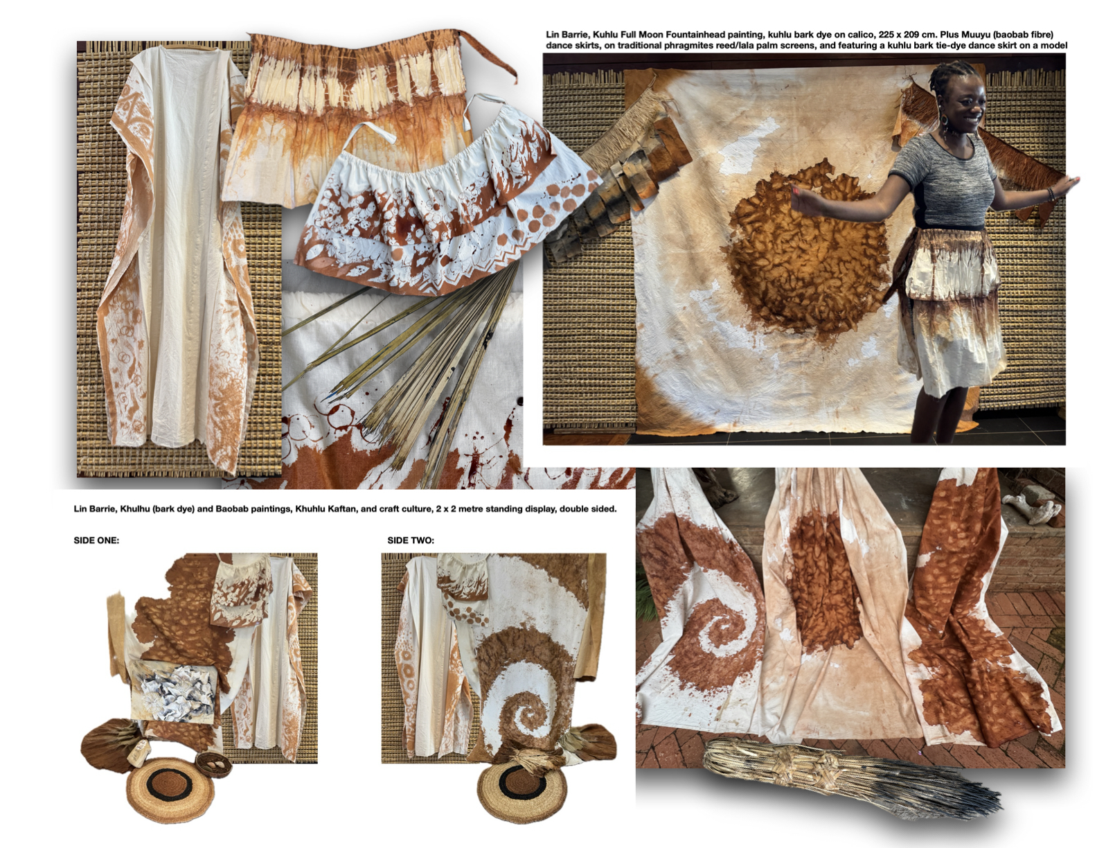 Exploring Traditional dyes in art and crafts in the south east lowveld…. At the British Council, Creative Economy Week held in Harare, early 2025, my explorations into indigenous bark dyes resulted in an art workshop where I created tie dyed and hand painted art/dance skirts and rhythm-inspired paintings using my hand collected and processed khulhu bark (Trichelia emetica)….