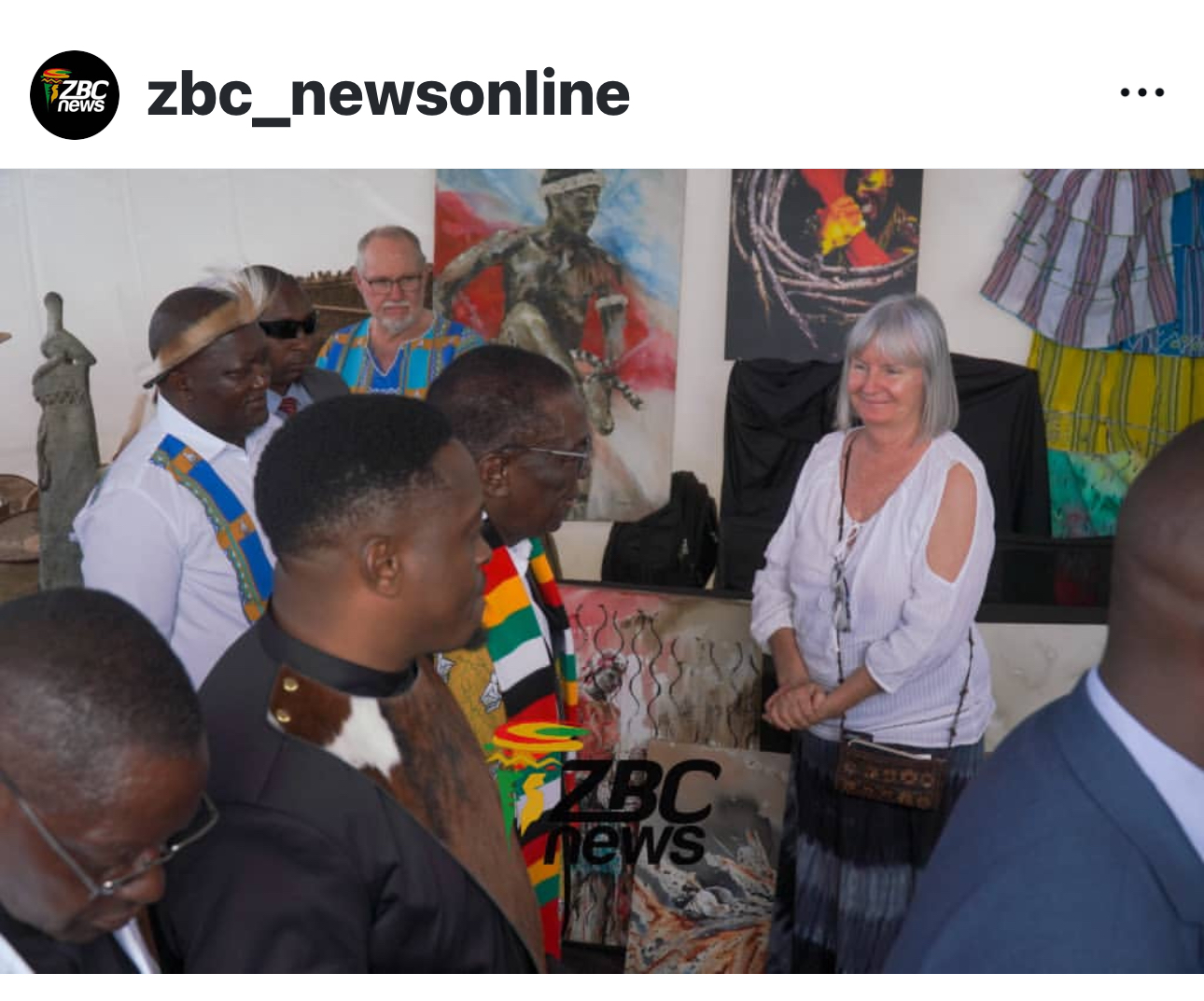 We, as Burnt Offerings Collective, (Lin Barrie, Johnson Zuze and Kelli Barker), were honoured when President Manangagwa visited our art exhibition, as seen here with Napoleon Nyanhi of NACZ, and Lin Barrie…..
