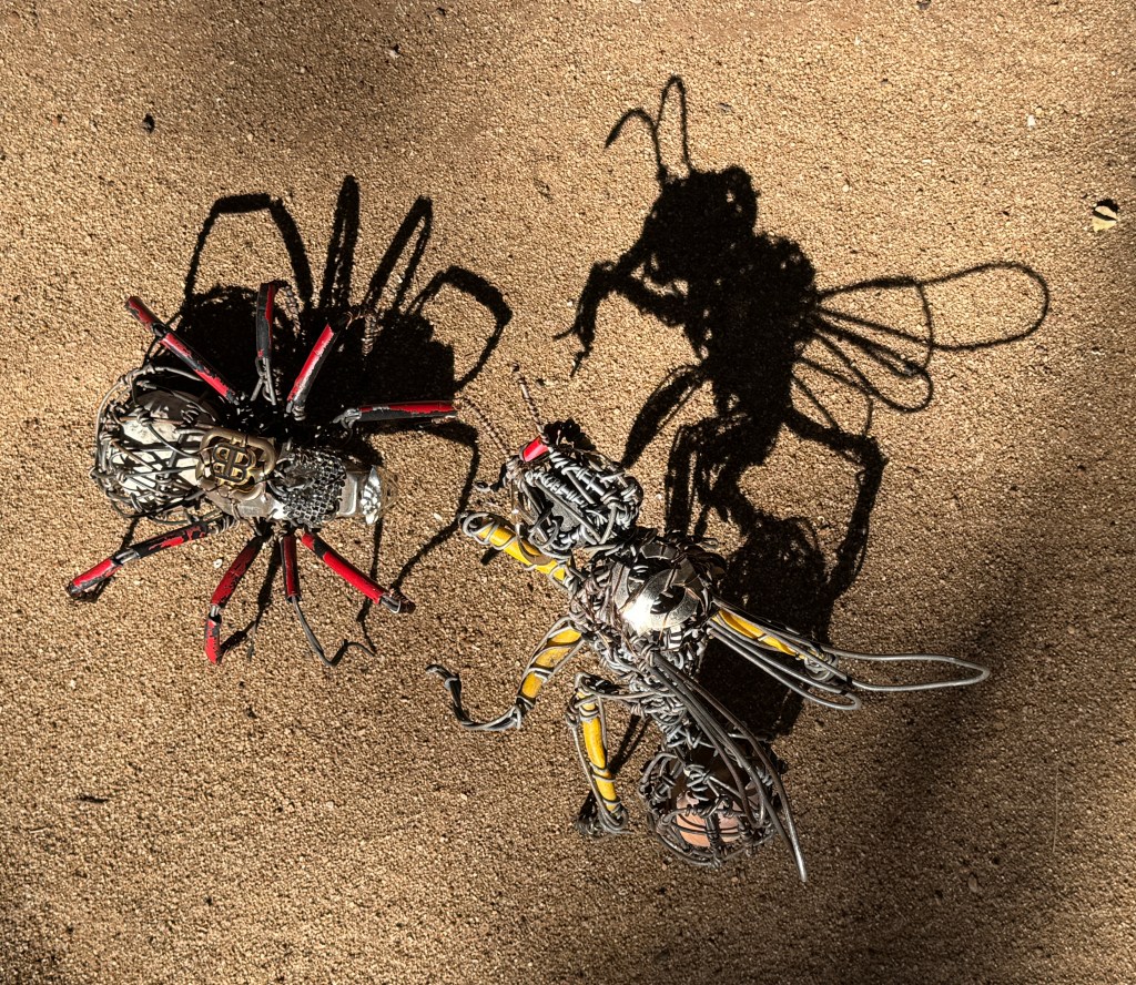 Johnson Zuze, Spider and Wasp, a ‘dance’ of life and death.….was shown at NGZ Miniatures exhibition and at Culture Month, Rusununguko…. celebrating the dance a spider-hunting wasp does when preying on the spiders it needs to nurture its eggs into a new generation of wasps…truly a Dance of life and death, recycling, regeneration….