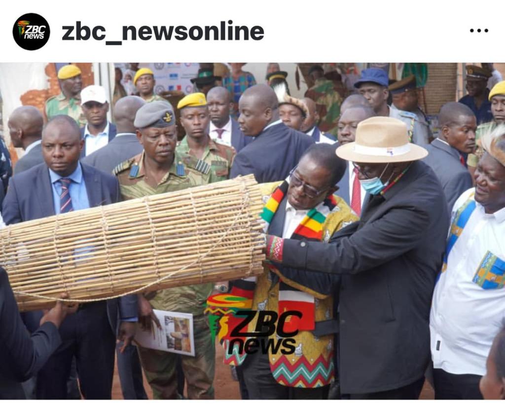 The crafts were noticed and admired by every level of viewer, all the way up to the President of Zimbabwe, who could not resist holding and learning about the traditional fish trap supplied by Enock Nyamavawa, and made at Mahenye. Here are Napoleon Nyanhi of NACZ and His Excellency, The President of Zimbabwe, talk CULTURE, art and craft, at the Mahenye crafts stand ….