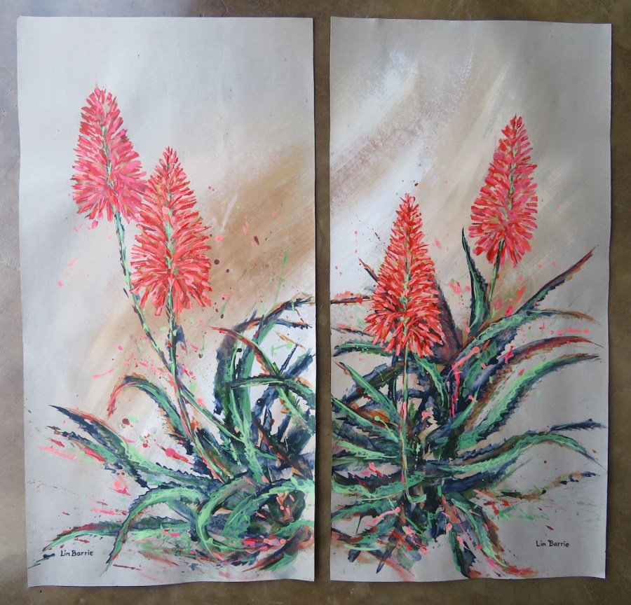 Aloe arborescens (diptych), acrylic on craft paper, each panel 91 X 45 cm lo res