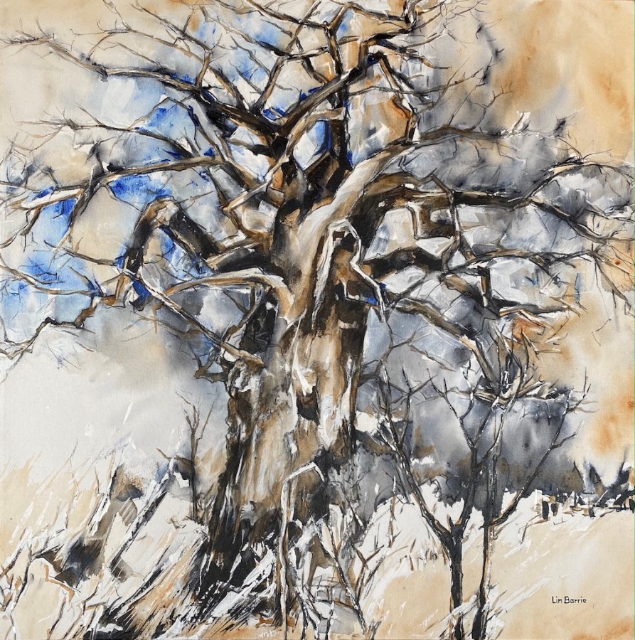 Baobab Chishakwe, mixed media on stretched canvas, (acrylic and charcoal), 90 x 90 cm lo res