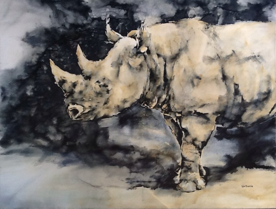 black rhino portrait oil on canvas, 100 x 130cm