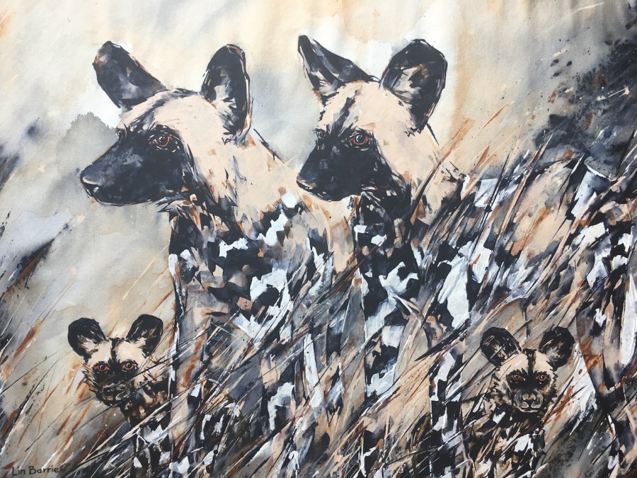 Chaperones and pups, acrylic on loose canvas, 90 x 114 cm detail 1 lo res