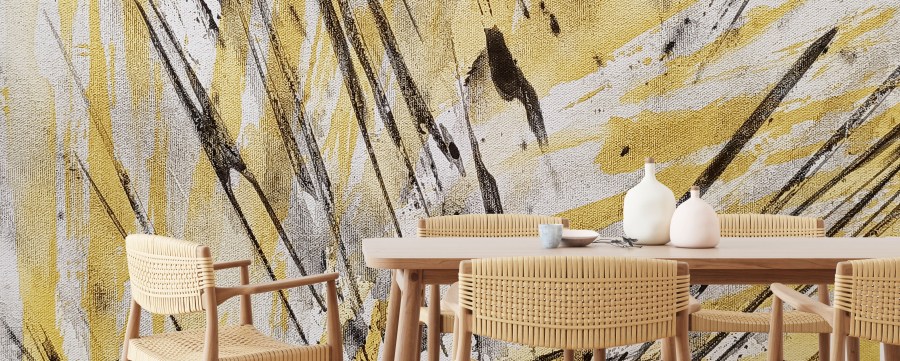 Dining room wall mock up with Areca palm, rattan dining set, wooden table on wooden floor. 3d illustration.