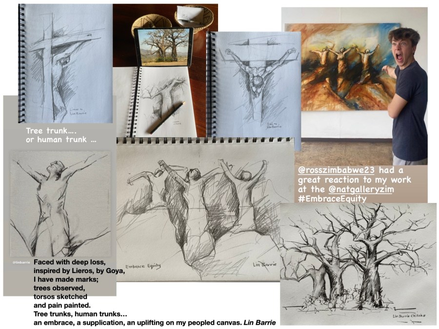 Lin Barrie, “Embrace Equity” Mixed Media on canvas 150 x 200 cm, working sketches.1