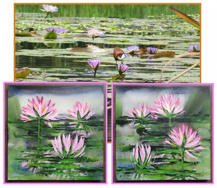 Pink waterlilies I and II, acrylic on stretched canvas, each panel 2 x 2 feet, lo res