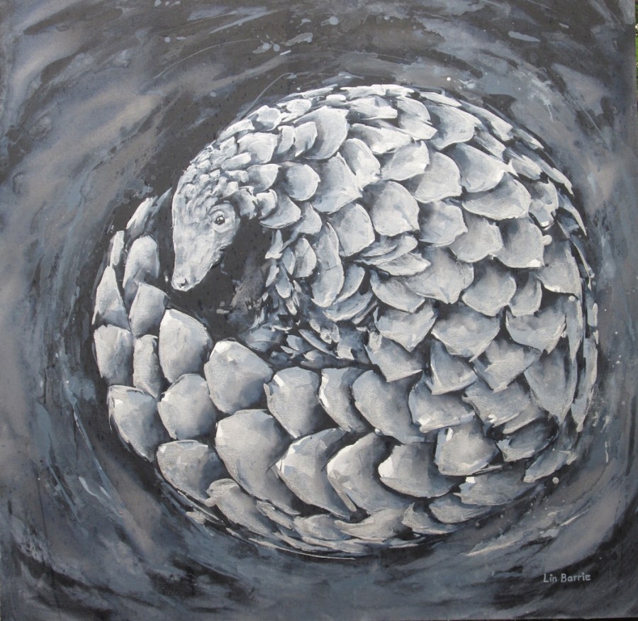 Rolled Silver Pangolin, acrylic on stretched canvas, 3 x 3 feet lo res