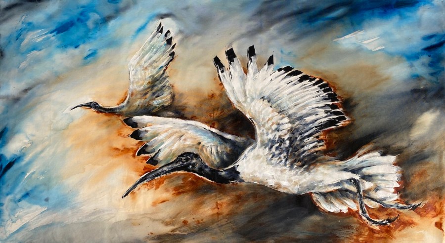 Sacred Ibises, acrylic on loose canvas, 100 x 180 cm lo res