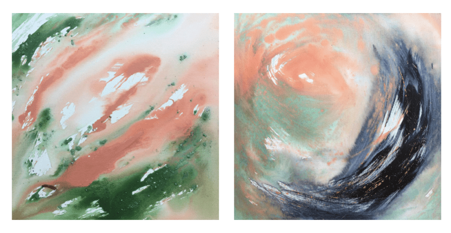 Soft Spring 1 and 2, acrylic on canvas, each 2 x 2 feet