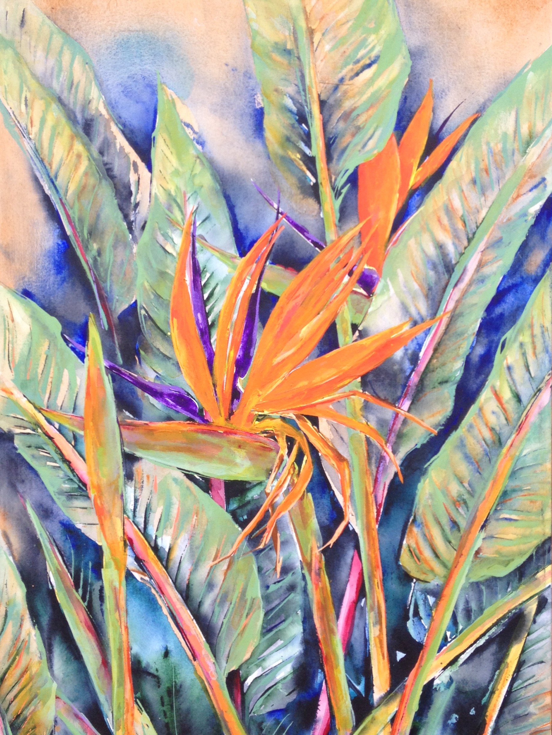 Strelitzia reginae, acrylic on stretched canvas, 91 x 61 cm the plot