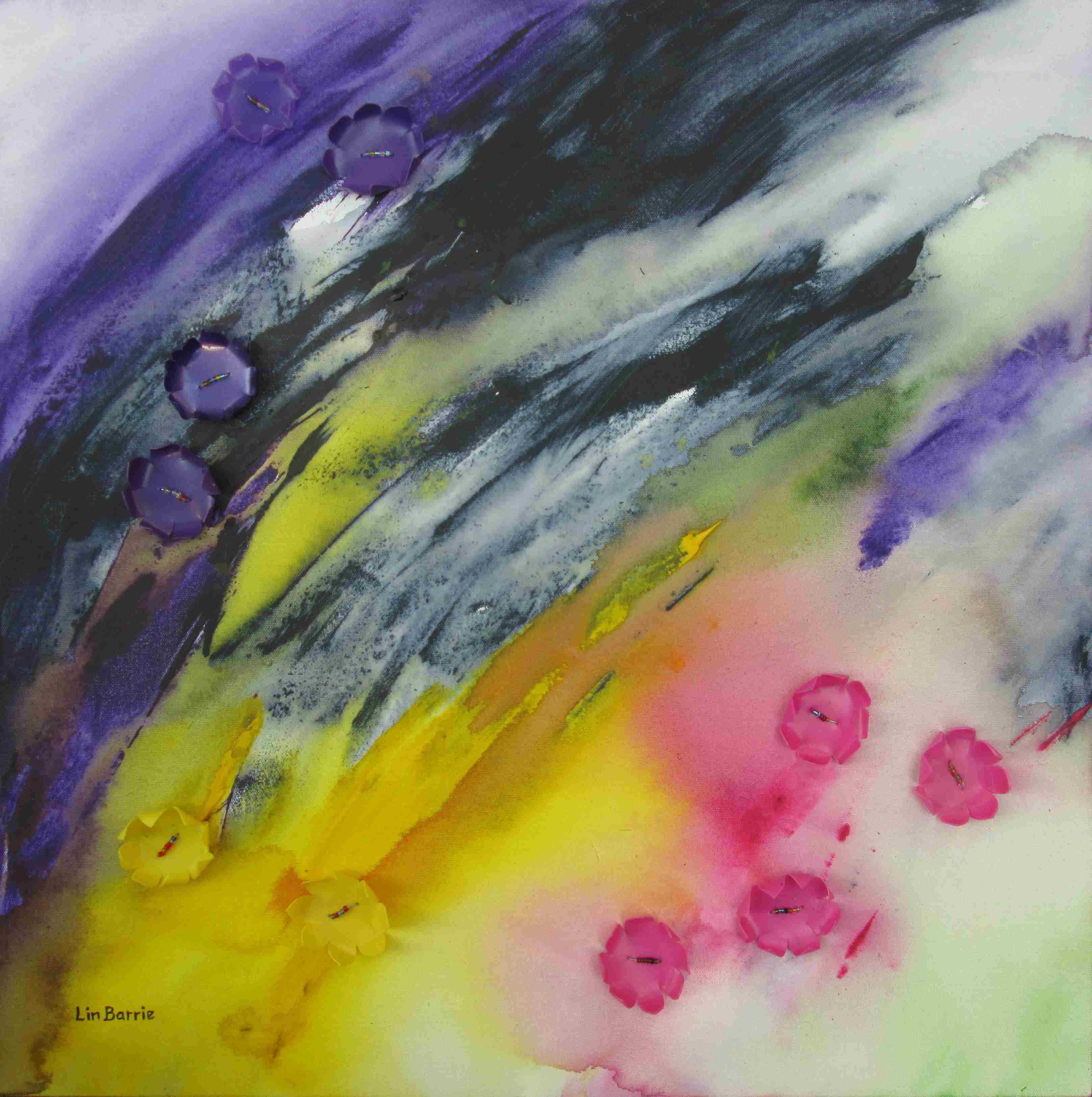 sunshine flowers 1, acrylic and mixed media, 60 x 60 cm