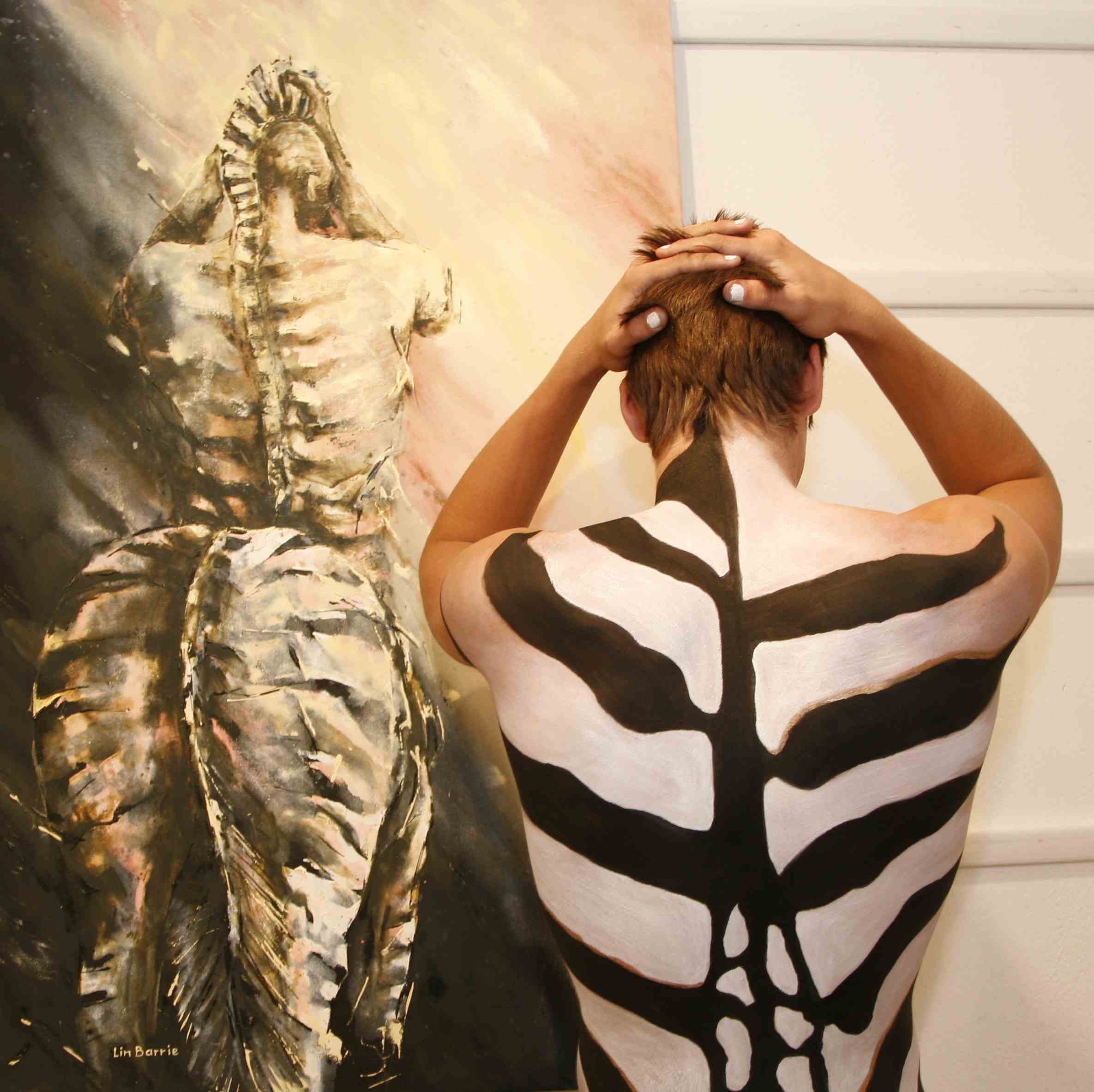 Zentaur-oil painting by Lin Barrie and body art by Kelli Barker