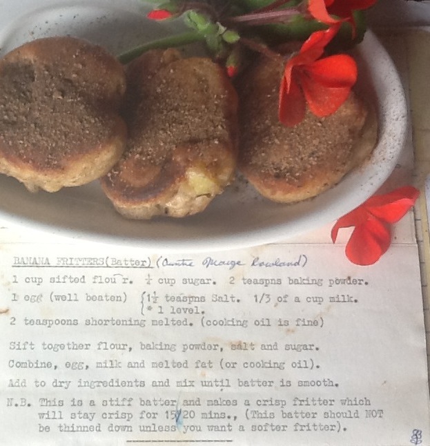 Banana Fritters, my Aunt’s delightful recipe, sweetened our childhood memories and I still make them for children and grandchildren to enjoy…(adults are never known to pass up an opportunity to crunch into one of Aunty Marge’s fritters either!)