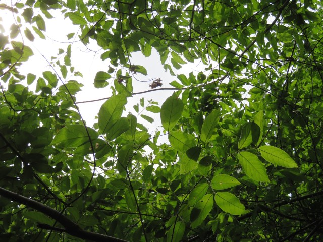 By 8.45 the decreasing shade encouraged them to move deeper under the trees, she leading the way and staring up into the thick Capparis vine-covered canopy, as if again looking for an aerial bed..or maybe thats just natural, to peer upwards and check for what might be in the trees above you…especially if you are a tree-loving cat!