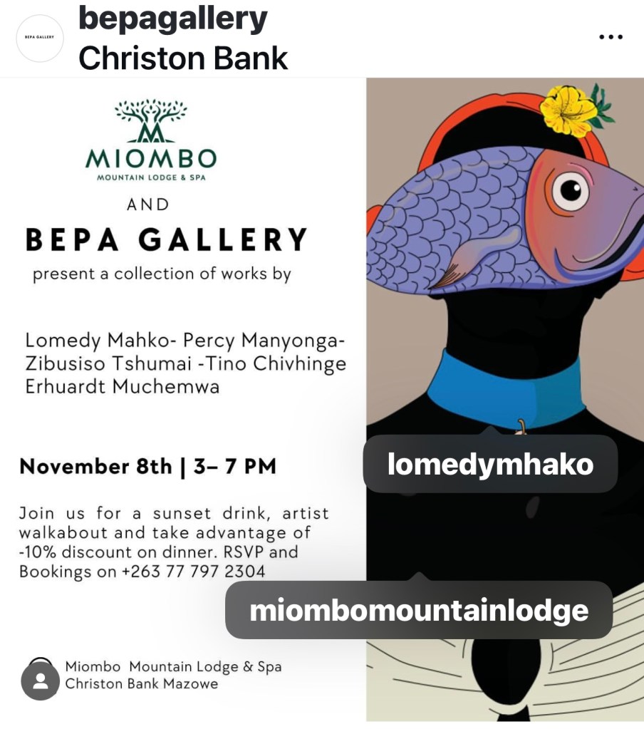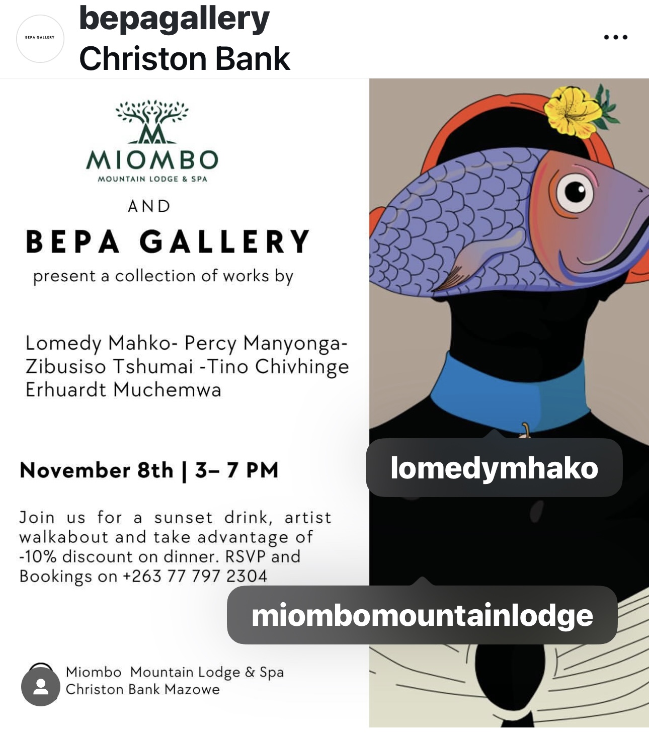 run by Jo and Josefina, Bepa Gallery is showing five Zimbabwean artists in the high roofed well lit spaces at Miombo Mountain Lodge and Spa. …