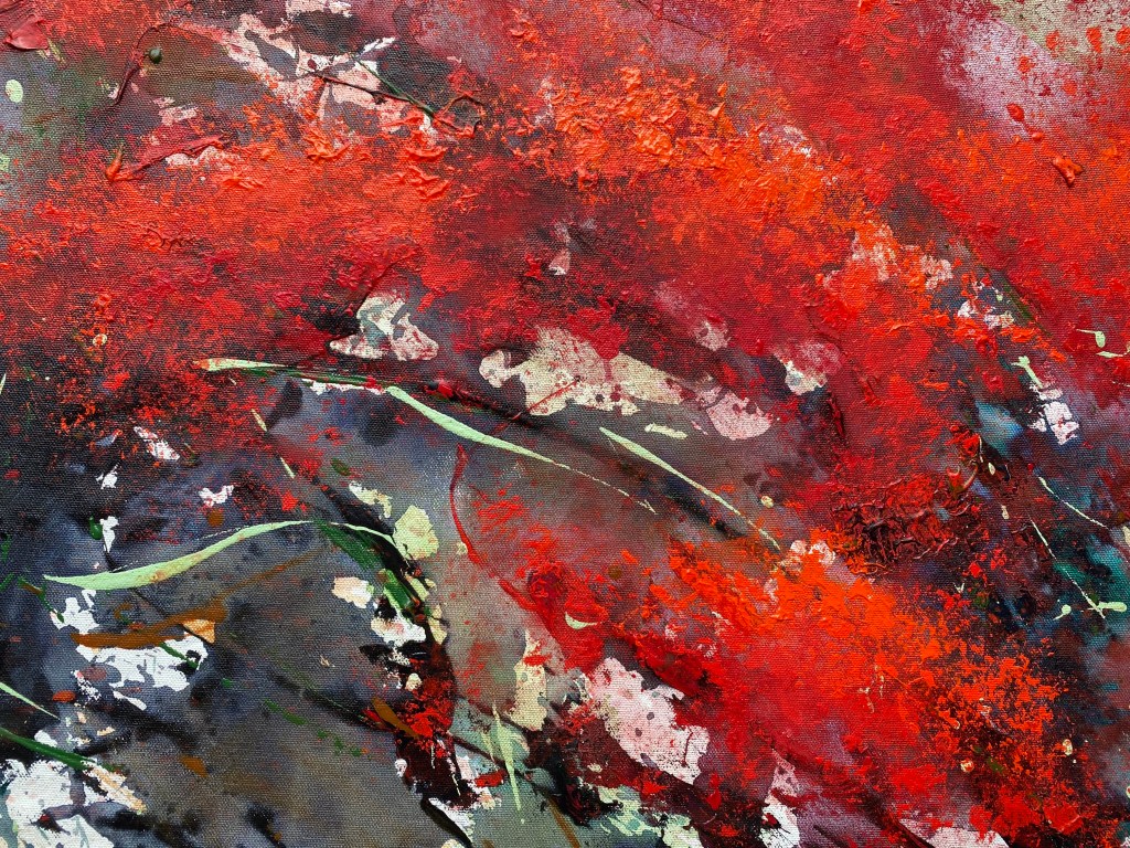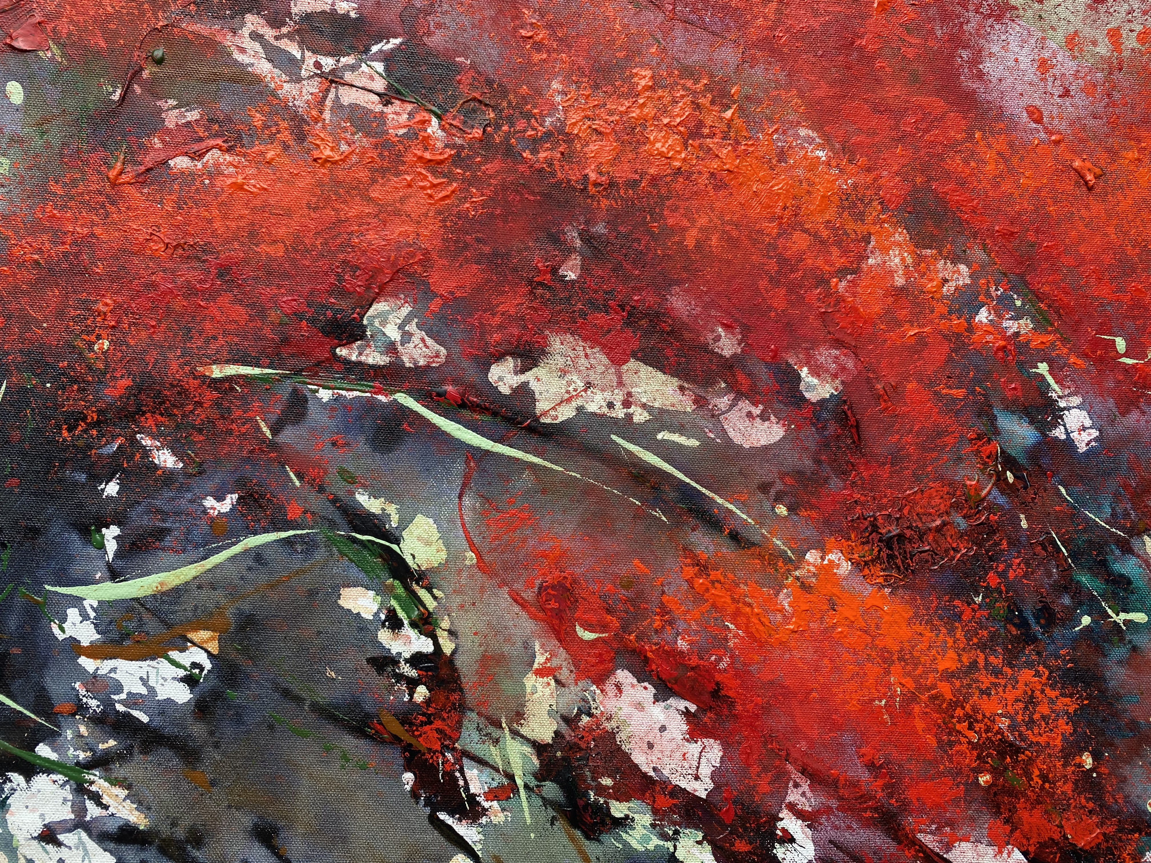 Thinking red- that t shirt of Kelli’s!!!….Always this flamboyant colour moves my soul to delight – and reflects in my painting -here’s a close up detail ..