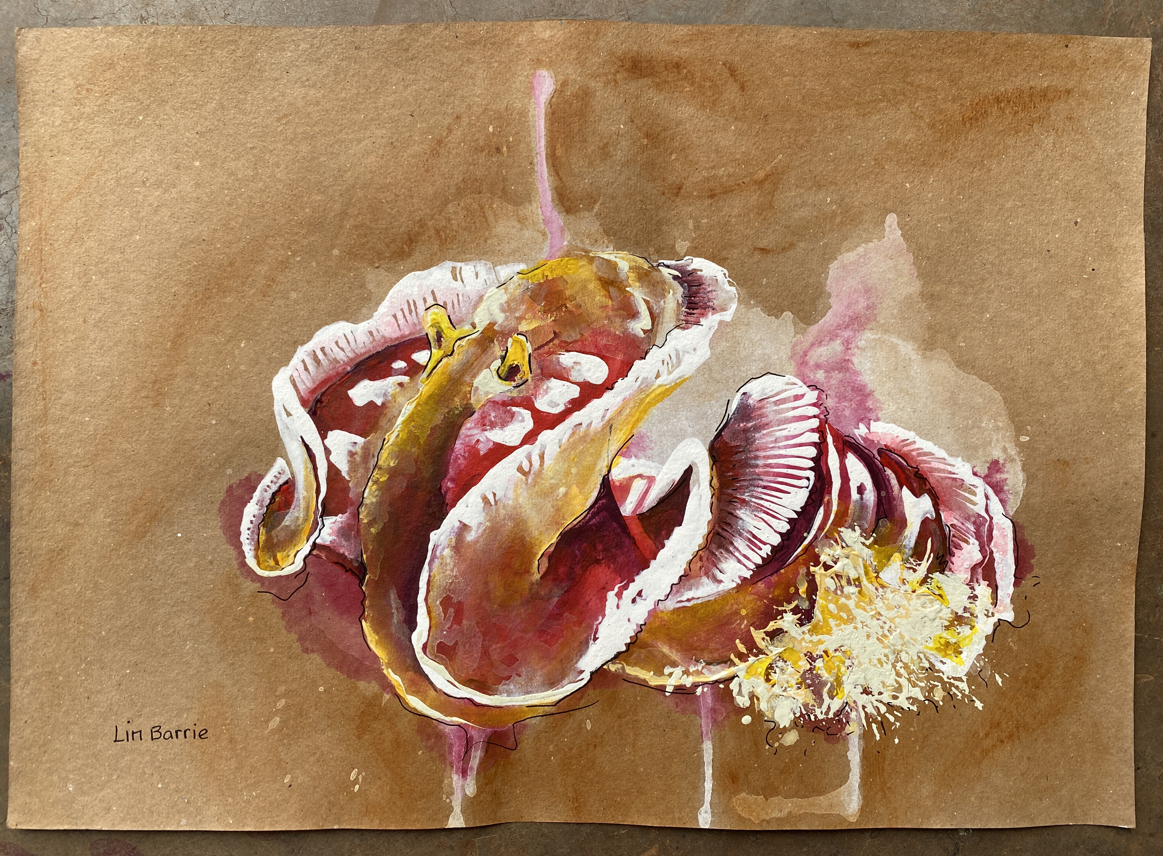 Lin Barrie, Sega Sea Slug 2, Acrylic on brown craft paper, 32.5 x 45.5 cm, 2022: