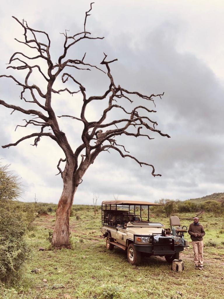 Dead Tree, and safari guide Dixon…- a scenic landscape at Madikwe, so evocative of Africa.